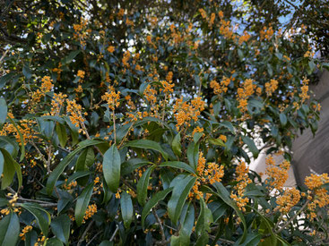 10月中旬金木犀の花が満開です! 木姿が見えなくても‥かぐわしい香りがその存在を感じることができます‥秋を先取りしてる様なそんな香りが大好きです!銀木犀は余り見ませんが‥
